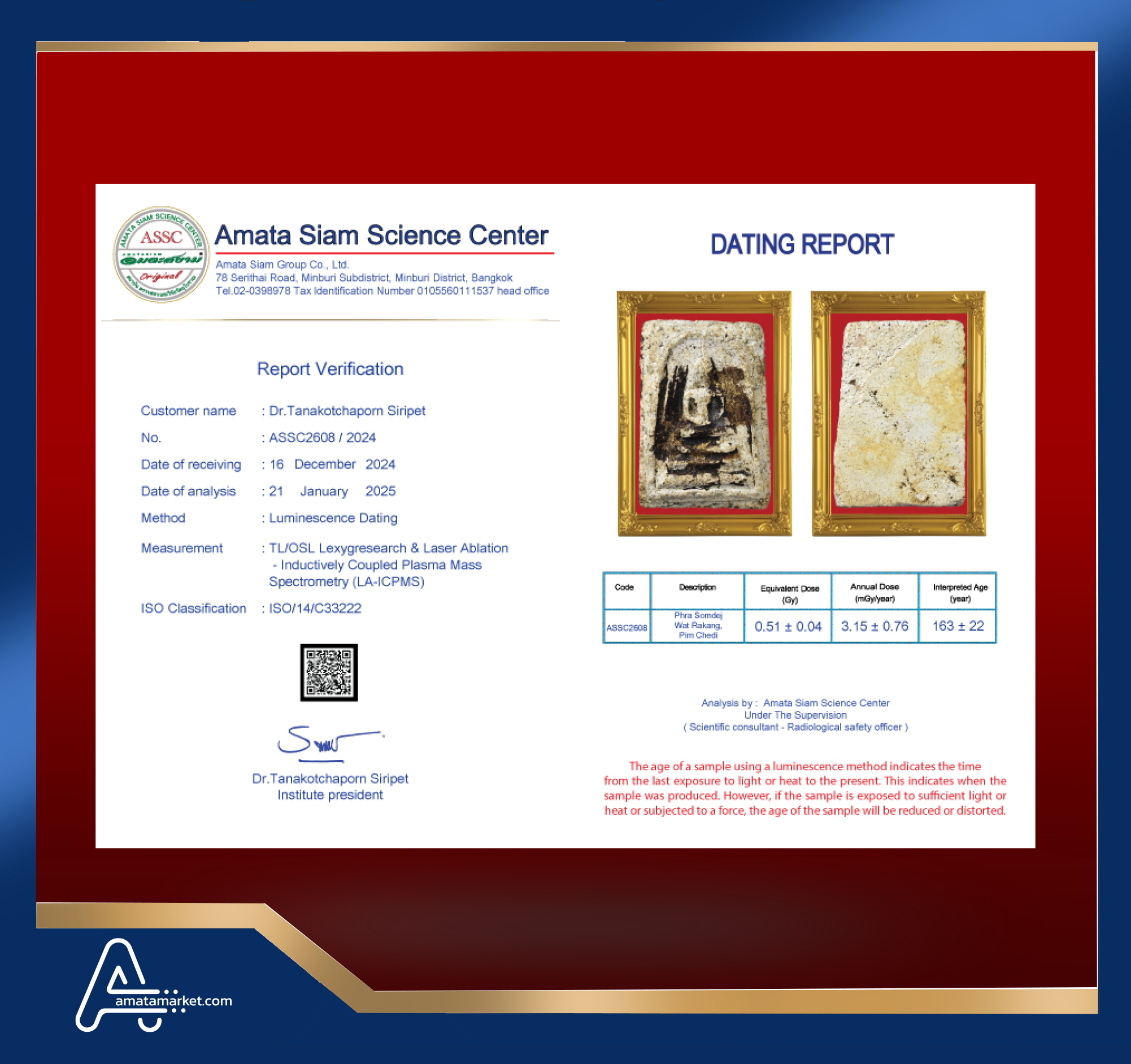 In conclusion, however, scientific procedure still can’t tell the pureness of amulets but can tell how long they have been constructed. However Amata Siam is an expert of natural science and combining scientific procedure will soon tell the exact age of the antiques.
