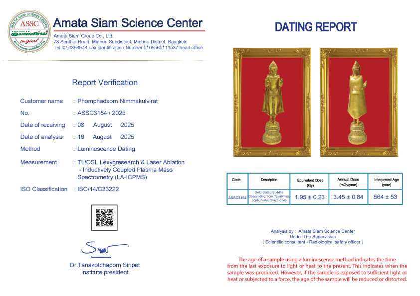 In conclusion, however, scientific procedure still can’t tell the pureness of amulets but can tell how long they have been constructed. However Amata Siam is an expert of natural science and combining scientific procedure will soon tell the exact age of the antiques.